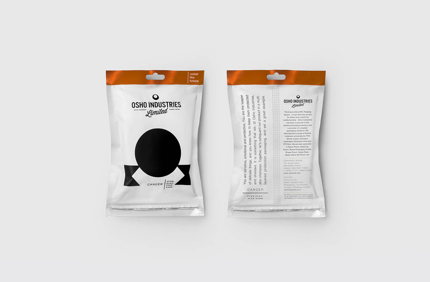 This has been designed for branding Osho Industries Limited at 'AAHAR - The food and hospitality fair'. The branding is based on sun signs and their characteristics in the form of packaging which promotes the company as well.